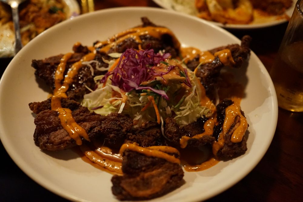Late night din. Love the private booth seatings. Better bar food than expected. OC Ktown. Cheap drinks, great to mingle with friends. Private parking lot shared with plaza and kbq ayce place. Soju place.
